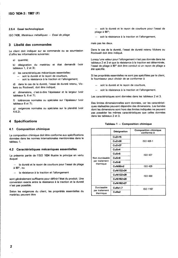 ISO 1634-3:1987 - Plaques, tôles et bandes en cuivre et en alliages de cuivre corroyés