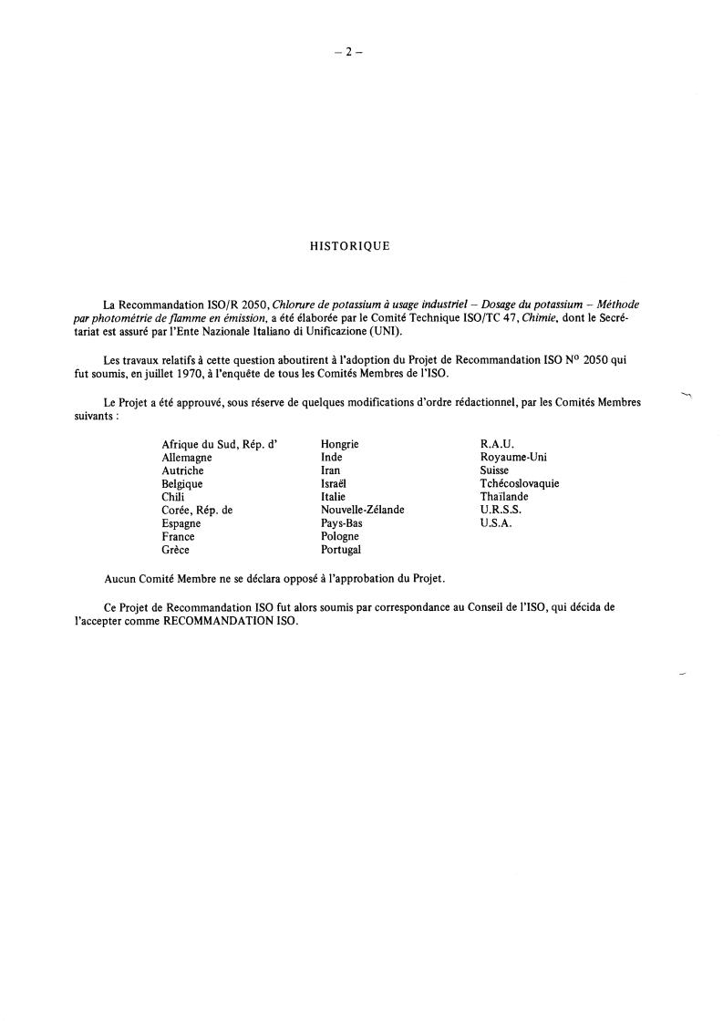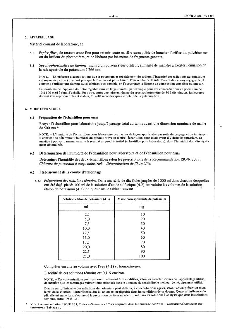 La Recommandation ISO/R 2050, Chlorure de potassium à usage industriel - Dosage du potassium - Méthode