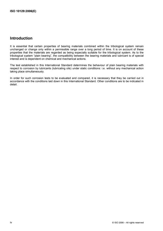 ISO 10129:2006 establishes a test of the corrosion-resistance of bearing materials to lubricants. It also gives the most important general principles for carrying out such corrosion testing.