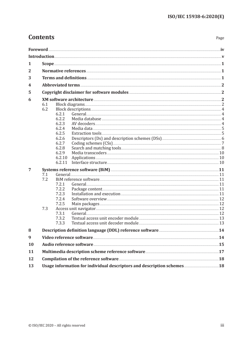 ISO/IEC 15938-6:2020 - Information technology — Multimedia content description interface — Part 6: Reference software Released:6/4/2020