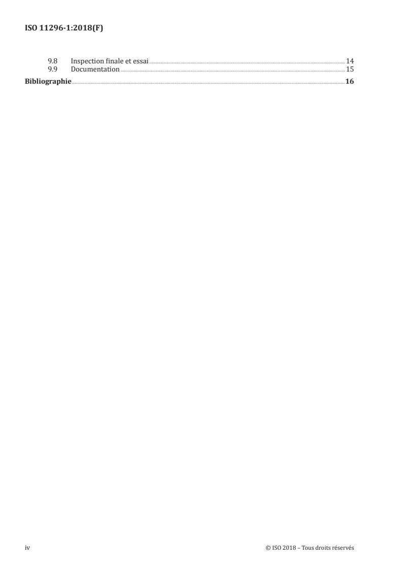 ISO 11296-1:2018 spécifie les exigences et les méthodes d'essai pour les systèmes de canalisations en plastique destinés à être utilisés pour la rénovation des réseaux de branchements et de collecteurs d'assainissement enterrés sans pression, qui fonctionnent comme des systèmes gravitaires et pouvant faire l'objet d'une mise en charge maximale de 0,5 bar[1]. Il est applicable aux tubes et raccords tels que fabriqués, de même qu'au système de tubage installé. Il n'est pas applicable à la canalisation existante ni aux revêtements projetés non structuraux ni aux matériaux de remplissage annulaire. ISO 11296-1:2018 établit les exigences générales communes à toutes les techniques de rénovation pertinentes. [1] 1 bar = 0,1 MPa = 0,1 N/mm2 = 105 N/m2.