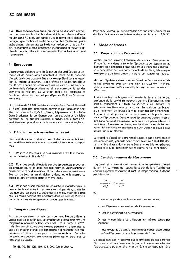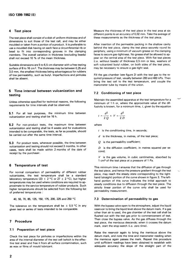 ISO 1399:1982 is a standard published by the International Organization for Standardization (ISO). Its full title is "Rubber, vulcanized — Determination of permeability to gases — Constant volume method". This standard covers: Rubber, vulcanized — Determination of permeability to gases — Constant volume method