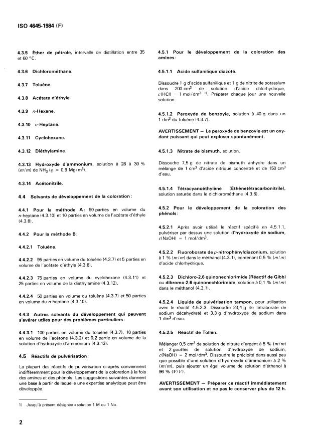 4.4.3.1 100 parties en volume du toluène (4.3.71, 10 parties 4.5.2.5 Réactif de Tollen.