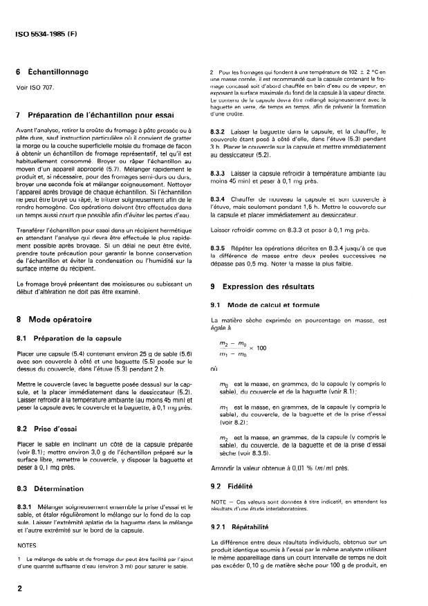 ISO 5534:1985 - Fromages et fromages fondus -- Détermination de la matiere seche (Méthode de référence)