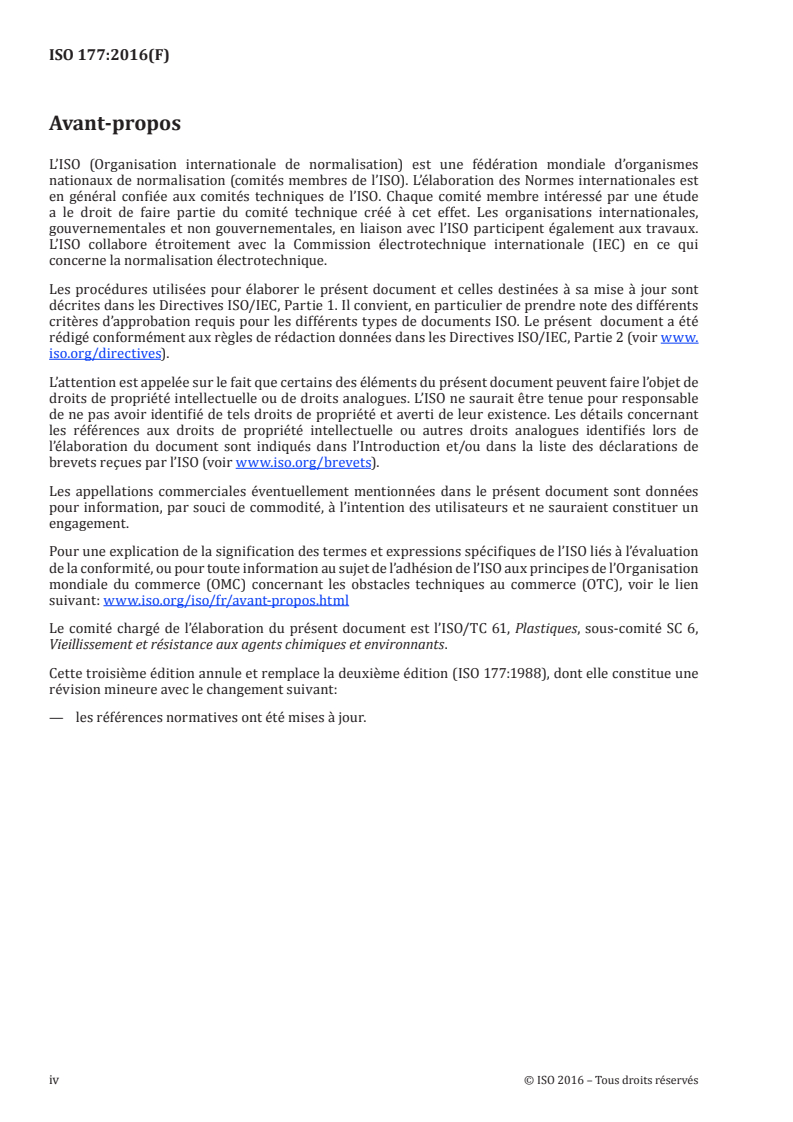 Cette troisième édition annule et remplace la deuxième édition (ISO 177:1988), dont elle constitue une