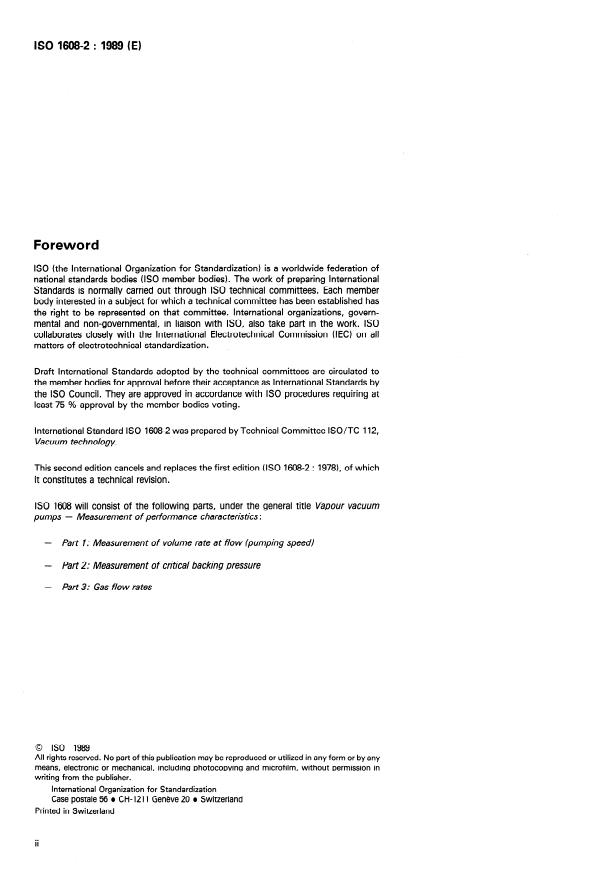 ISO 1608-2:1989 - Vapour vacuum pumps -- Measurement of performance characteristics