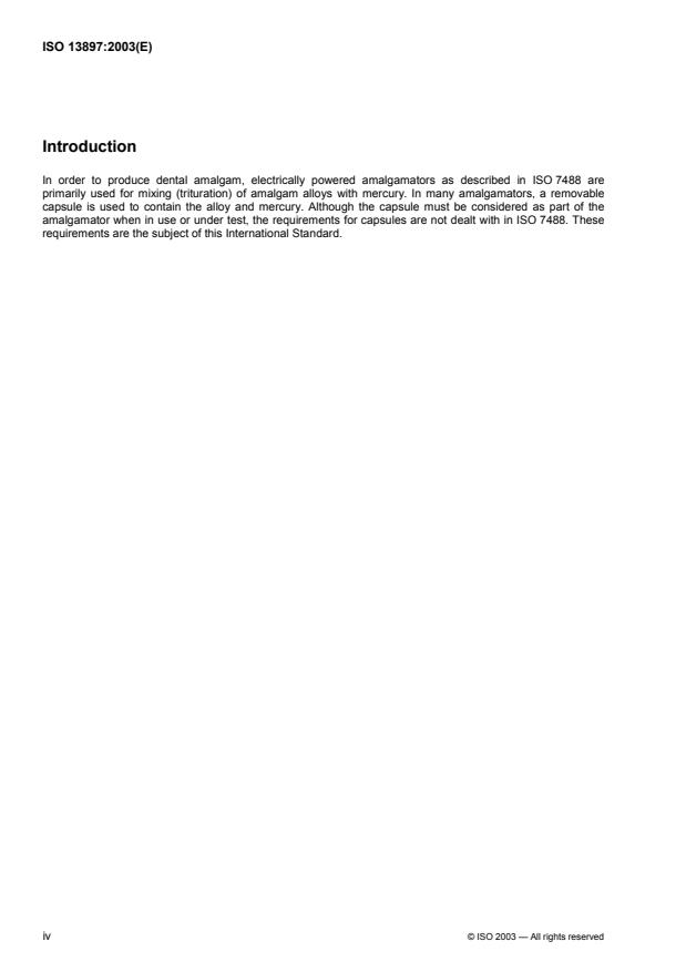 ISO 13897:2003 specifies requirements and test methods for predosed capsules and for reusable capsules used for mixing dental amalgam alloys and mercury.