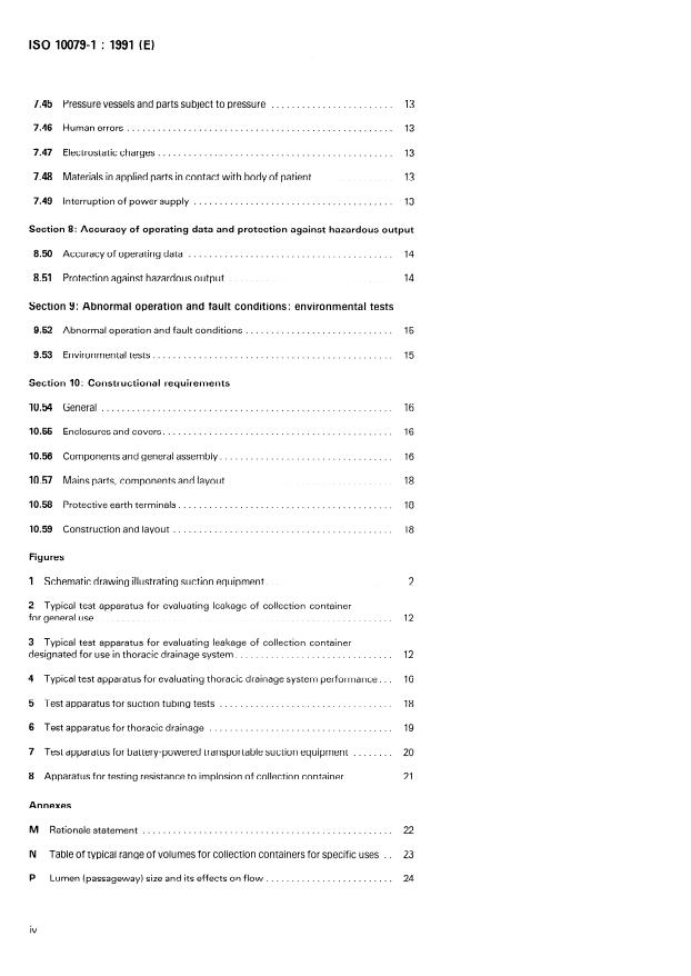 ISO 10079-1:1991 is a standard published by the International Organization for Standardization (ISO). Its full title is "Medical suction equipment — Part 1: Electrically powered suction equipment — Safety requirements". This standard covers: Medical suction equipment — Part 1: Electrically powered suction equipment — Safety requirements