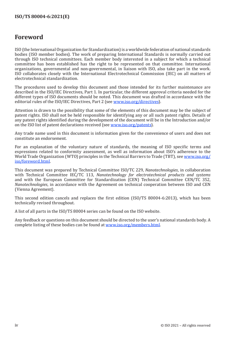ISO/TS 80004-6:2021 is part of the broader ISO/TS 80004 series on nanotechnologies vocabulary that includes: