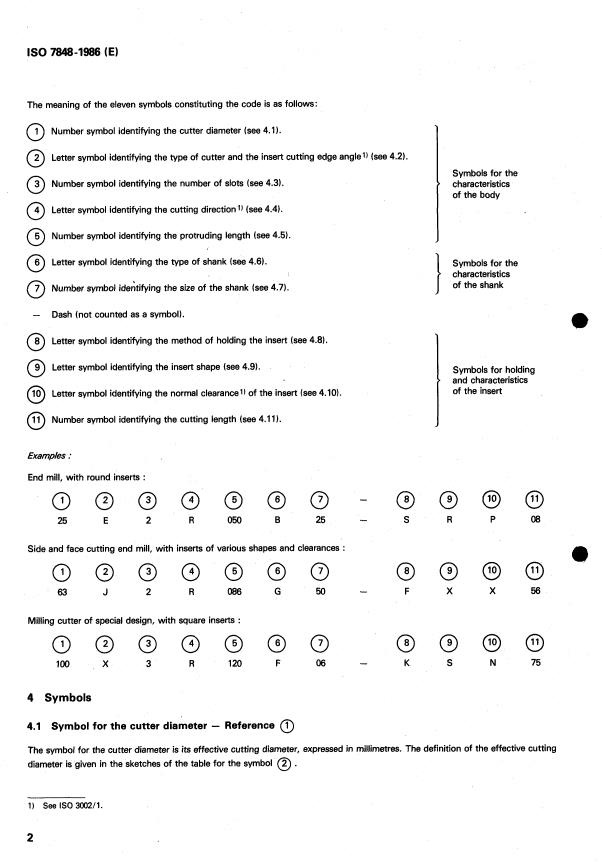 ISO 7848:1986 is a standard published by the International Organization for Standardization (ISO). Its full title is "Shank type milling cutters for indexable inserts — Designation". This standard covers: Shank type milling cutters for indexable inserts — Designation