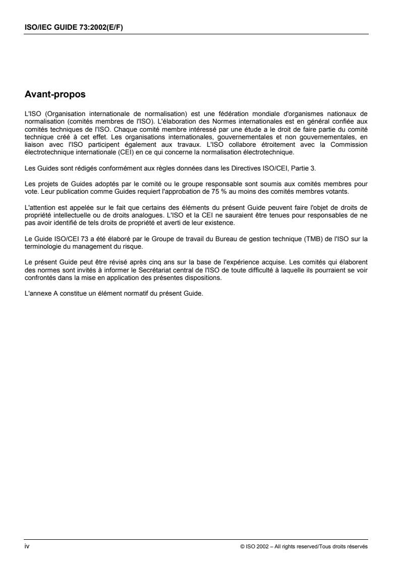 ISO/IEC Guide 73:2002 is a guide published by the International Organization for Standardization (ISO). Its full title is "Risk management — Vocabulary — Guidelines for use in standards". This standard covers: Risk management — Vocabulary — Guidelines for use in standards
