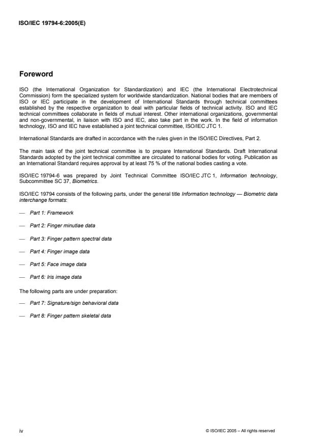 Keywords: ISO/IEC 19794-6:2005, iris image data, biometric data interchange formats, iris recognition, CBEFF, rectilinear iris format, polar iris format, image compression, JPEG2000, image preprocessing.