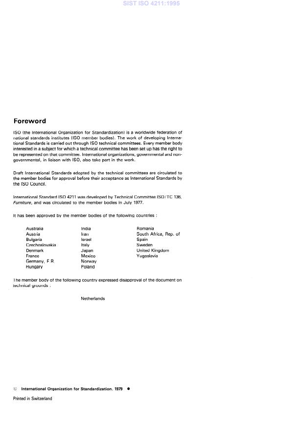 ISO 4211:1979 is classified under the following ICS (International Classification for Standards) categories: 97.140 - Furniture. The ICS classification helps identify the subject area and facilitates finding related standards.