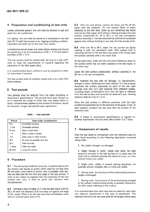 ISO 4211:1979 - Furniture -- Assessment of surface resistance to cold liquids