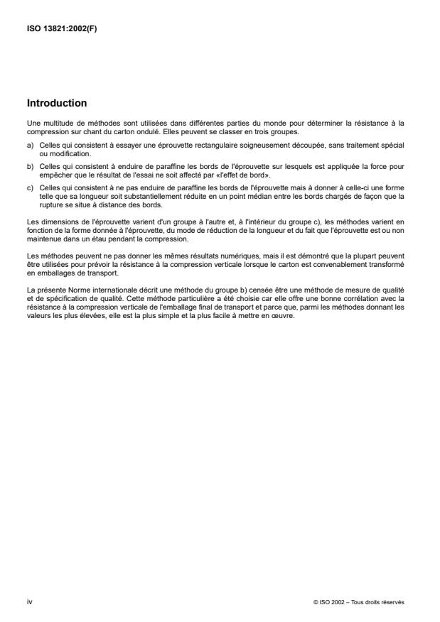 ISO 13821:2002 - Carton ondulé -- Détermination de la résistance a la compression sur chant -- Méthode du bord paraffiné