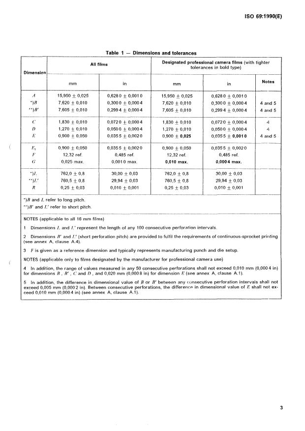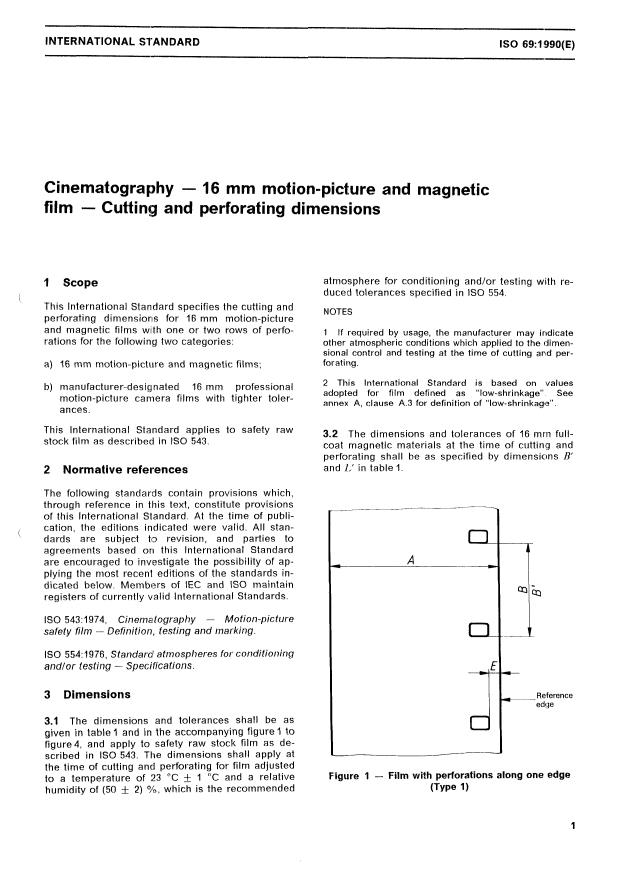ISO 69:1990 - Cinematography — 16 mm motion-picture and magnetic film — Cutting and perforating dimensions Released:6/28/1990