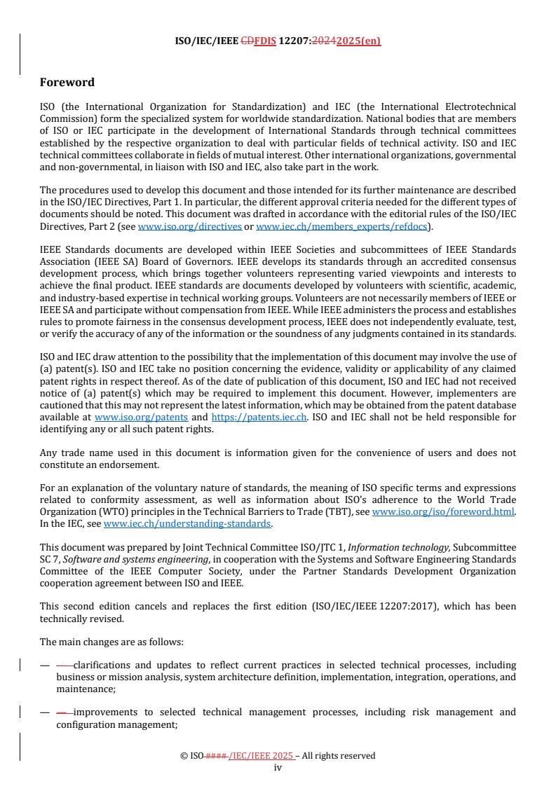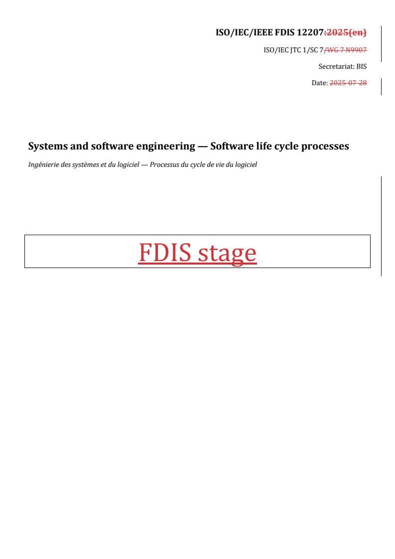 REDLINE ISO/IEC/IEEE FDIS 12207 - Systems and software engineering — Software life cycle processes Released:9/29/2025