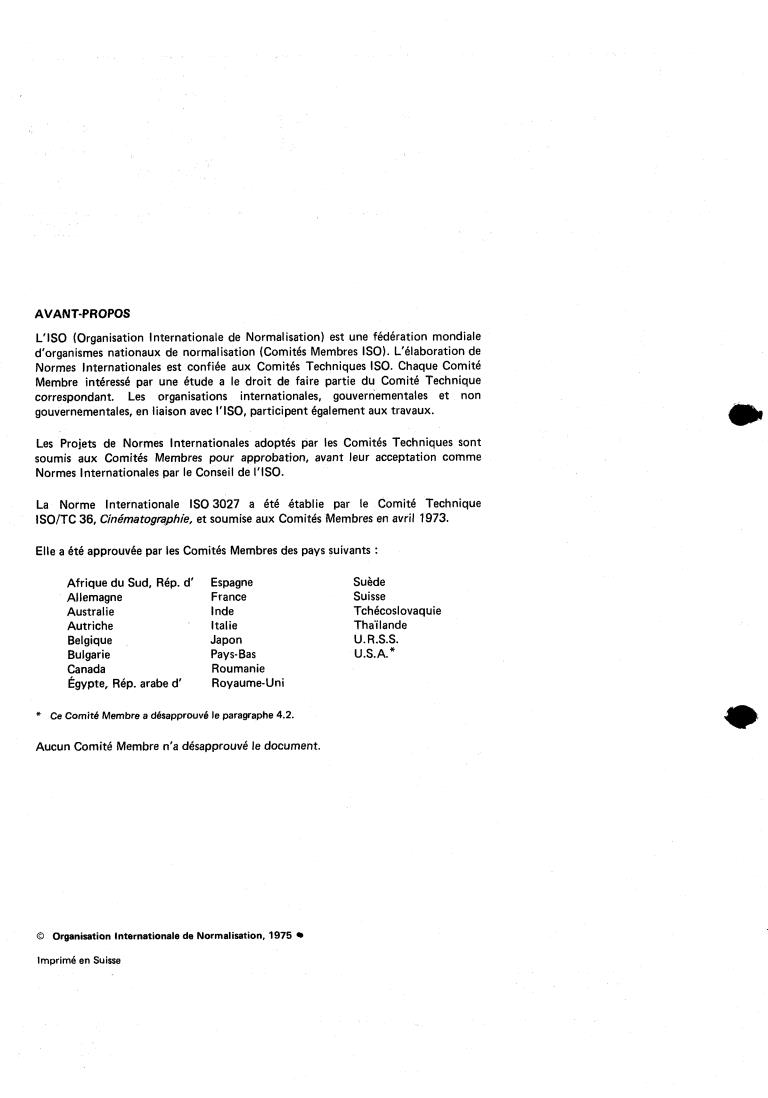 ISOlTC 36, Cinématogqphie, et soumise aux Comités Membres en avril 1973.