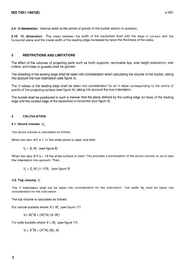 ISO 7451:1997 - Earth-moving machinery -- Volumetric ratings for hydraulic excavator buckets and backhoe loader buckets