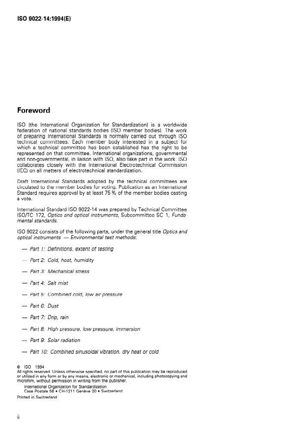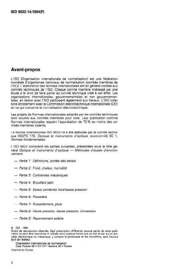 ISO 9022-14:1994 - Optiques et instruments d'optique -- Méthodes d'essais d'environnement
