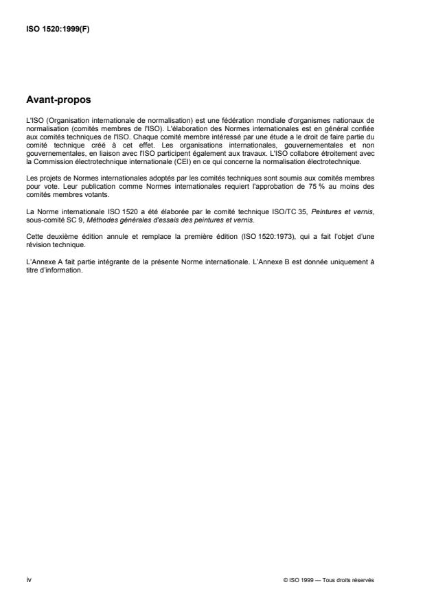 Cette deuxième édition annule et remplace la première édition (ISO 1520:1973), qui a fait l’objet d’une