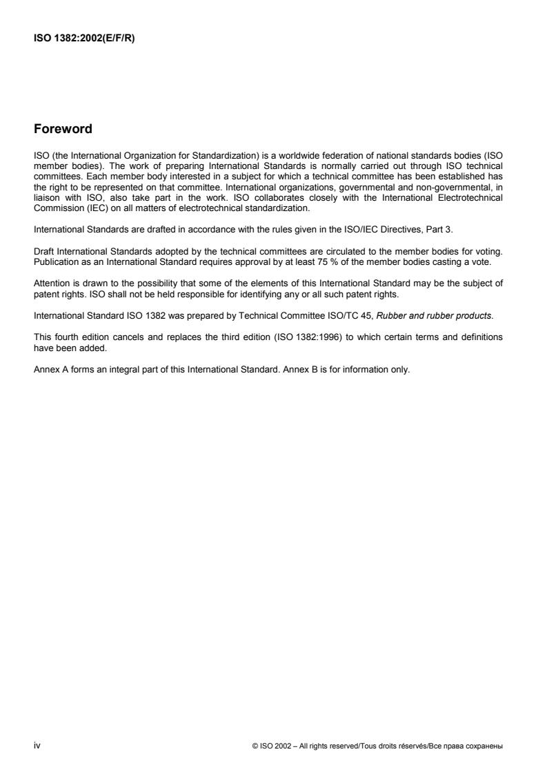 ISO 1382:2002 is a standard published by the International Organization for Standardization (ISO). Its full title is "Rubber — Vocabulary". This standard covers: Rubber — Vocabulary