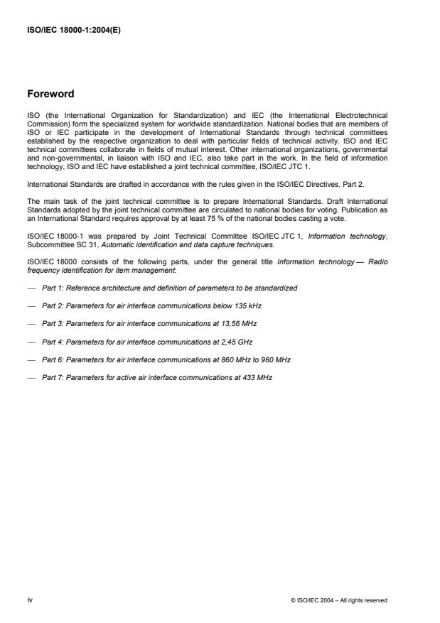 ISO/IEC 18000 is in several parts. This part of ISO/IEC 18000, Part 1 — Definition of parameters to be
