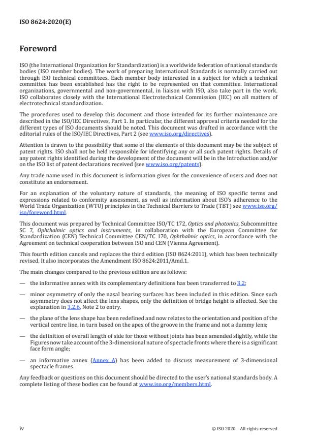 Keywords: ISO 8624:2020, ophthalmic optics, spectacle frames, measuring system, boxed lens system, frame dimensions, face form angle, bridge width, effective diameter, lens shape.