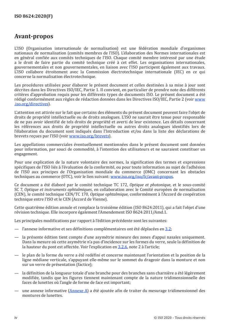ISO 8624:2020 - Optique ophtalmique -- Montures de lunettes -- Système de mesure et terminologie