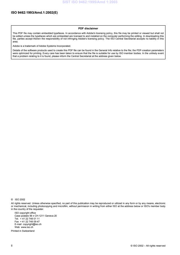 Ta slovenski standard je istoveten z: ISO 9462:1993/Amd 1:2002