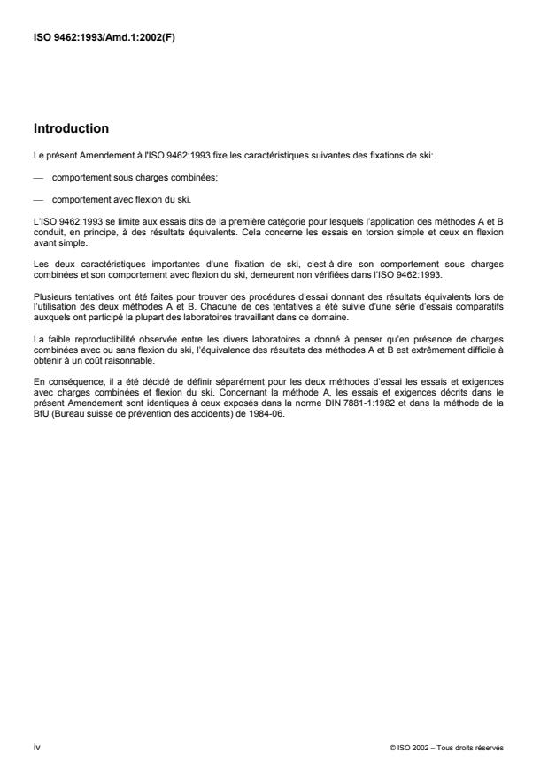 ISO 9462:1993/Amd 1:2002 is a standard published by the International Organization for Standardization (ISO). Its full title is "Alpine ski-bindings — Safety requirements and test methods — Amendment 1". This standard covers: Alpine ski-bindings — Safety requirements and test methods — Amendment 1