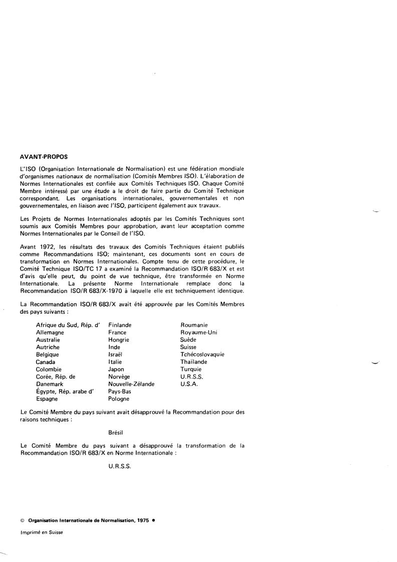 IS0 Recommendation R 683/X was approved by the Member Bodies of the