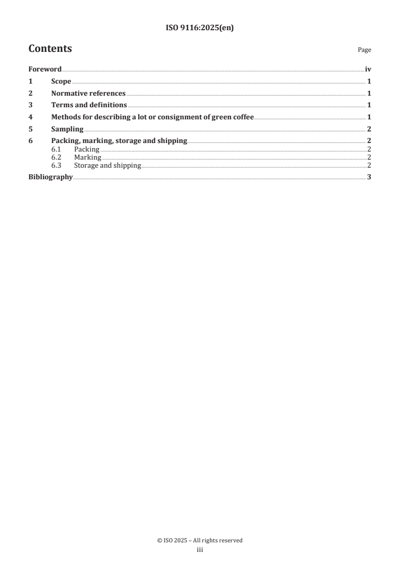 Keywords: ISO 9116:2025, green coffee specification, coffee sampling methods, coffee packing standards, coffee marking guidelines, green coffee storage, coffee shipping, international coffee standards, green coffee quality, ISO coffee standards.
