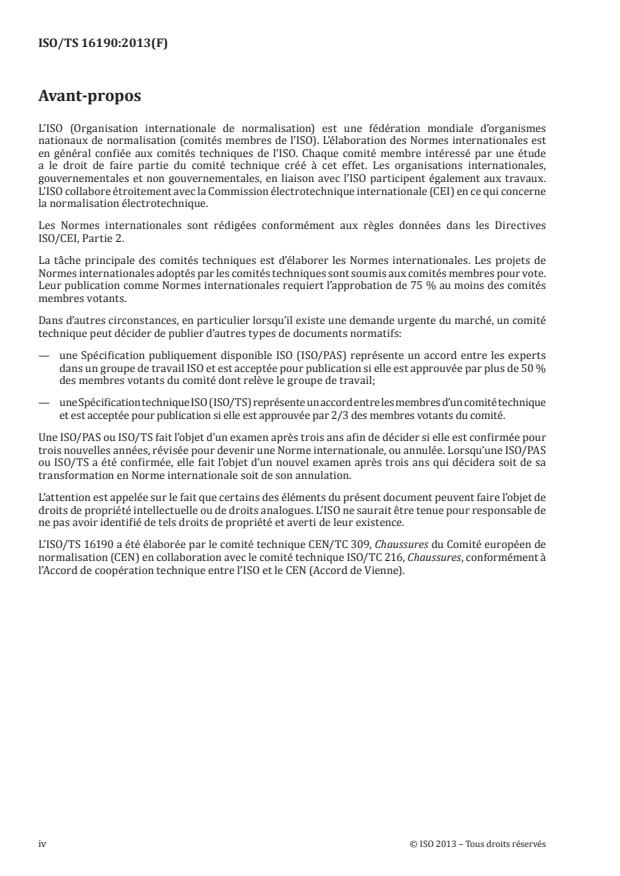 L’ISO/TS 16190 a été élaborée par le comité technique CEN/TC 309, Chaussures du Comité européen de