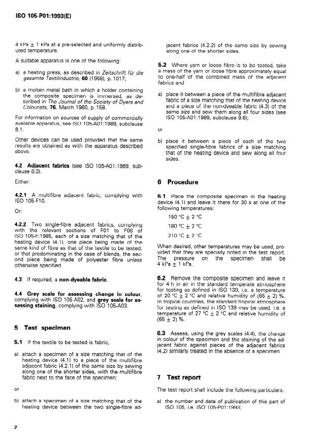 ISO 105-P:1978 - Textiles - Tests for colour fastness - Part P: Colour fastness to heat treatments - Effective Date