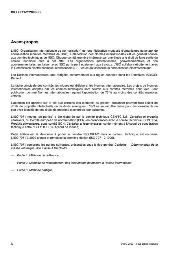ISO 7971-2:2009 - Céréales -- Détermination de la masse volumique, dite masse a l'hectolitre