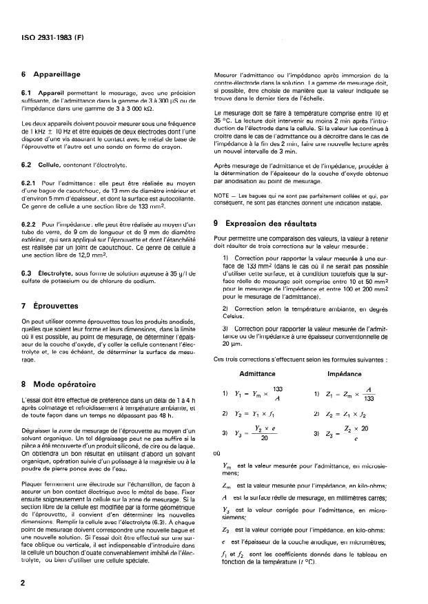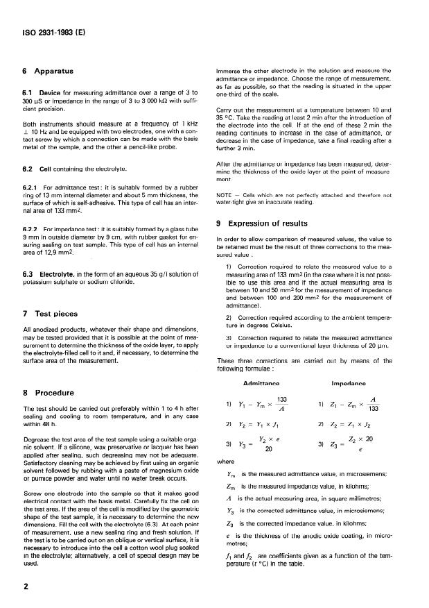 ISO 2931:1983 - Anodizing of aluminium and its alloys -- Assessment of quality of sealed anodic oxide coatings by measurement of admittance or impedance