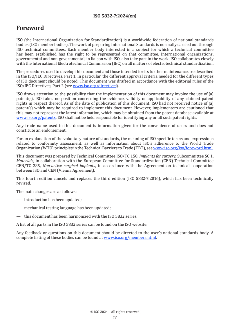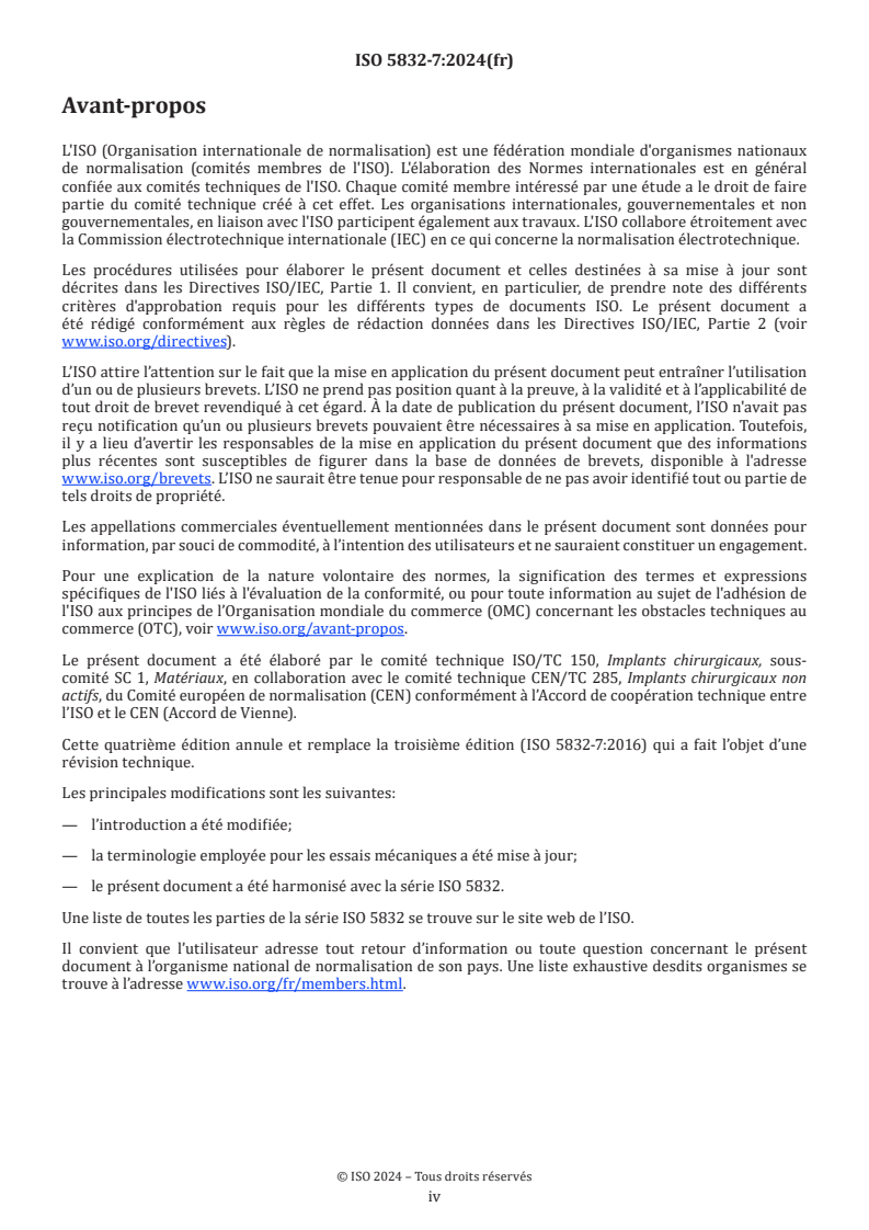 Cette quatrième édition annule et remplace la troisième édition (ISO 5832-7:2016) qui a fait l’objet d’une