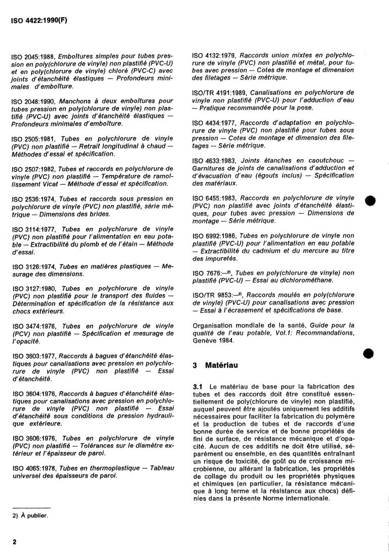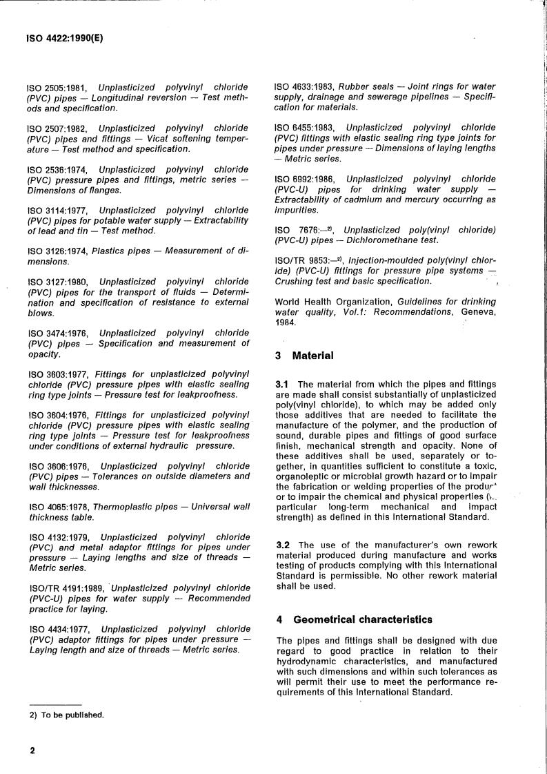 IS0 2536:1974, Tubes et raccords sous pression en IS0 6455:1983, Raccords en polychlorure de vinyle