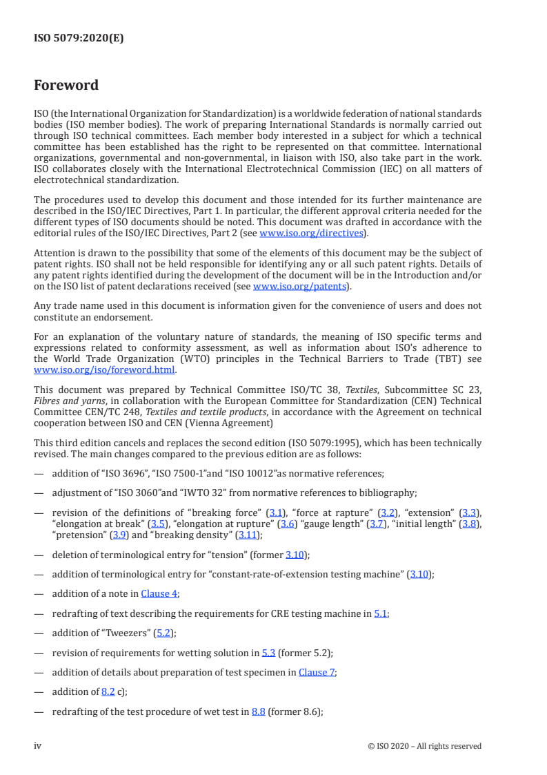 Keywords: ISO 5079:2020, textile fibres, breaking force, elongation at break, CRE testing machine, tensile testing, gauge length, breaking tenacity.
