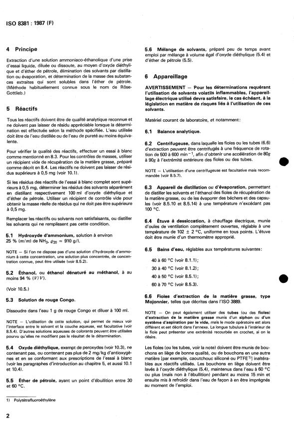 ISO 8381:1987 - Aliments a base de lait pour enfants en bas âge -- Détermination de la teneur en matiere grasse -- Méthode gravimétrique Röse-Gottlieb (Méthode de référence)