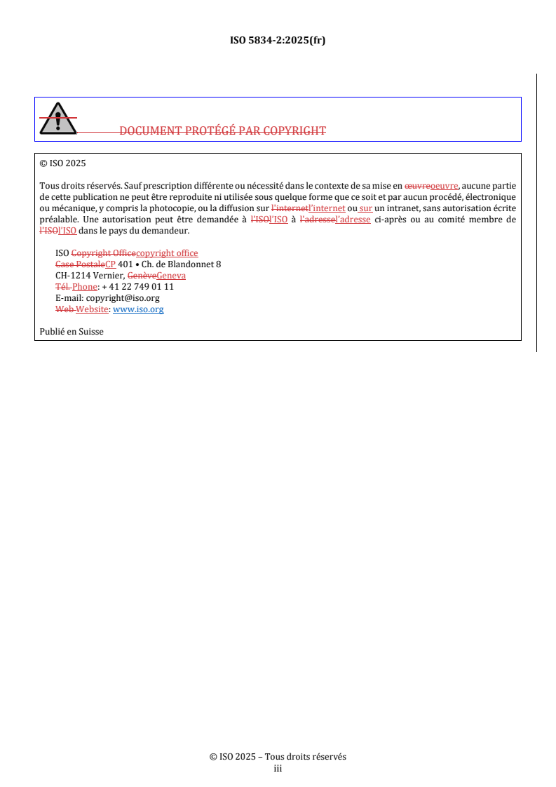 préalable. Une autorisation peut être demandée à l'ISOl’ISO à l'adressel’adresse ci-après ou au comité membre de