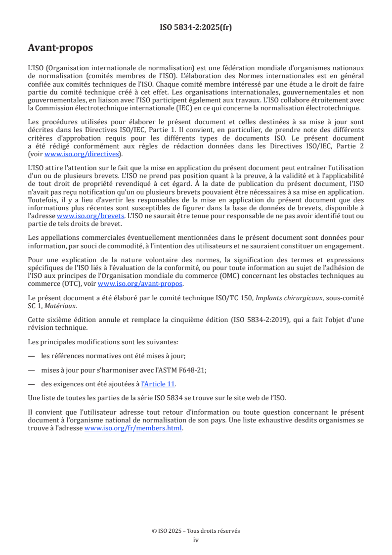 Cette sixième édition annule et remplace la cinquième édition (ISO 5834-2:2019), qui a fait l'objet d'une
