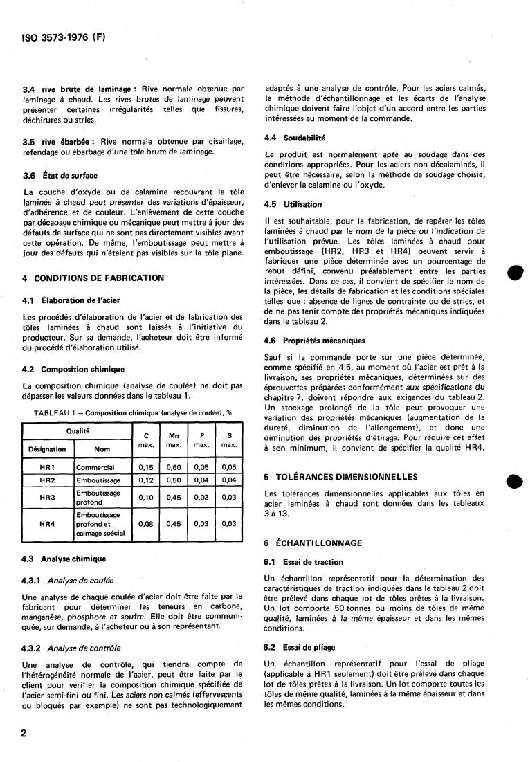 2) Norme Internationale IS0 3573. tôle en acier laminée à chaud.