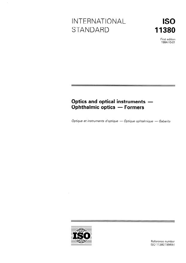 ISO 11380:1994 - Optics and optical instruments -- Ophthalmic optics -- Formers