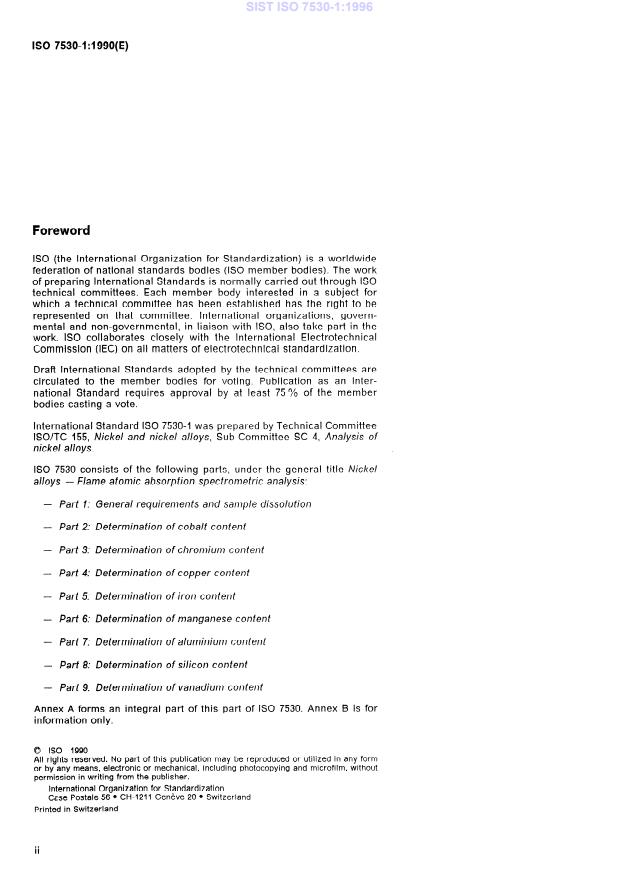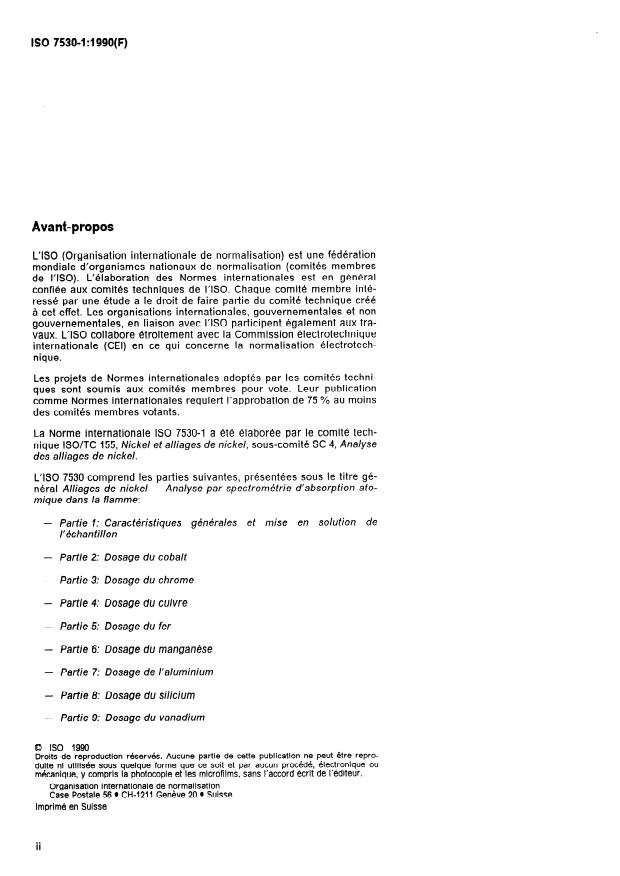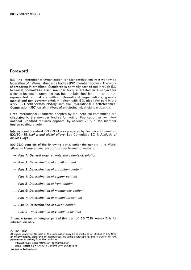 ISO 7530-1:1990 - Nickel alloys -- Flame atomic absorption spectrometric analysis