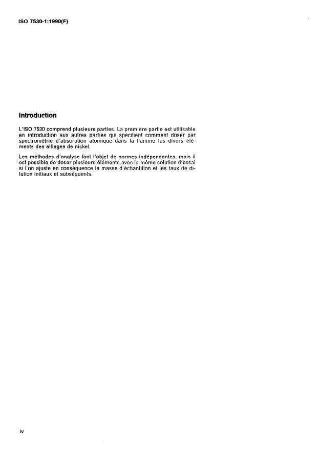 ISO 7530-1:1990 - Alliages de nickel -- Analyse par spectrométrie d'absorption atomique dans la flamme