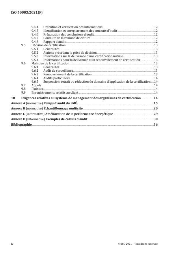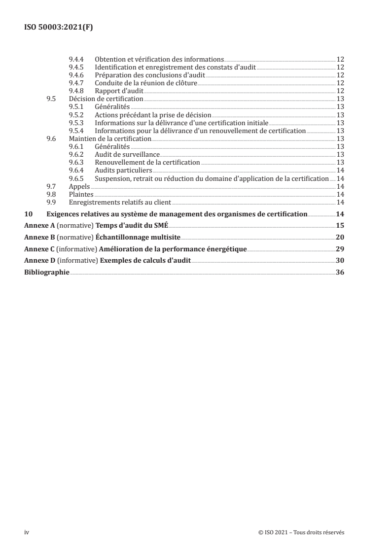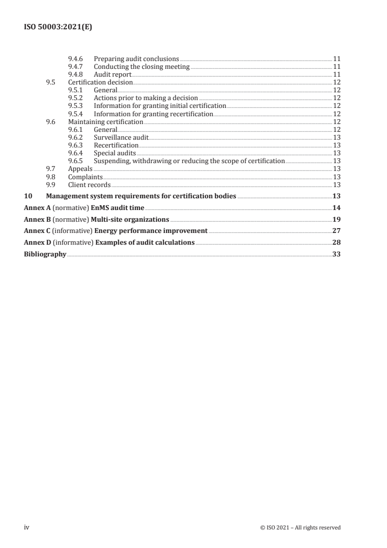 - Scope and principles - Establishes the intended use with ISO/IEC 17021-1 and defines terms specific to EnMS certification (audit time, duration, multi-site).