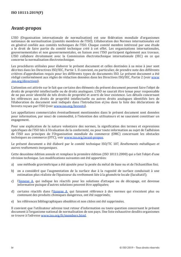 ISO 10111:2019 - Revetements métalliques et autres revetements inorganiques -- Mesurage de la masse surfacique -- Présentation des méthodes d'analyse gravimétrique et chimique
