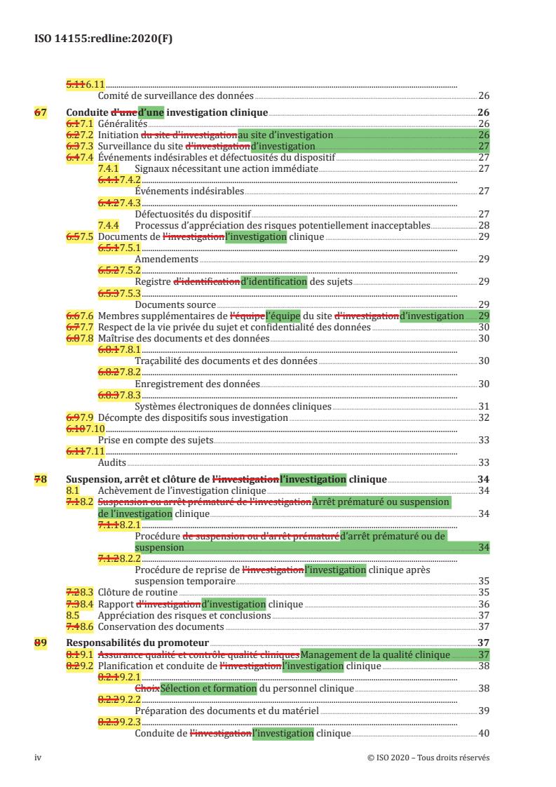 ISO 14155:2020REDLINE - Investigation clinique des dispositifs médicaux pour sujets humains -- Bonne pratique clinique